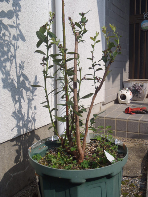 この苗木を購入した時はブルーベリの栽培の知識は全くなく、野菜と同じ感覚で土などを使った。