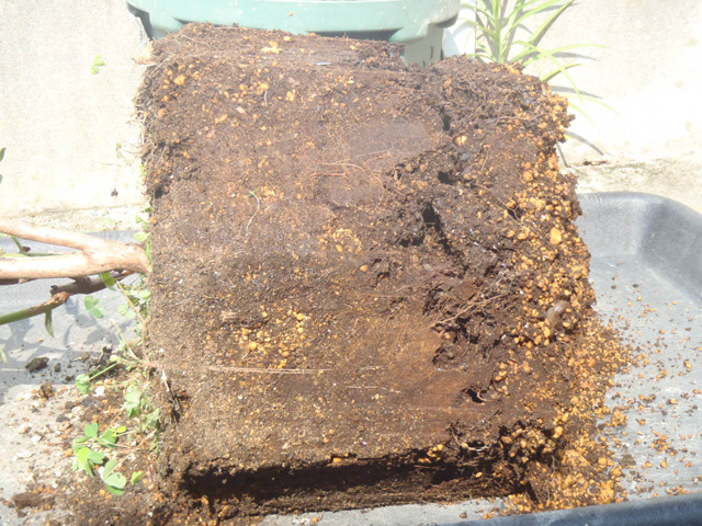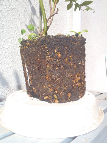 鉢から抜いて気が付いたが、そもそも根がぜんぜん回って無く鉢の中がスッカスカ状態。