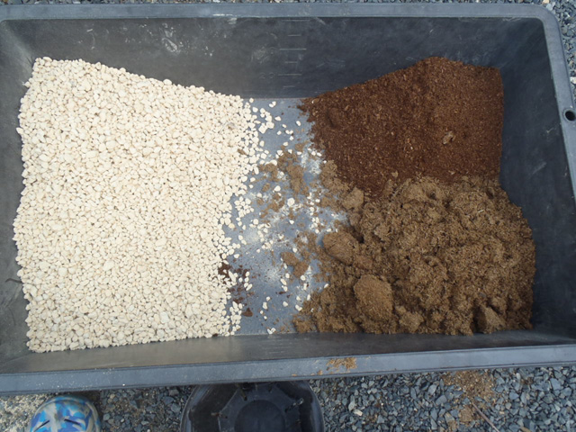 | 硬質鹿沼、竹パウダー、ピートモスを混ぜる |