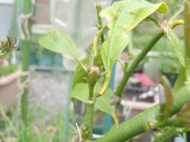 この木は昨年末に購入仕立てですので実を生らすと成長が遅くなってしまします。