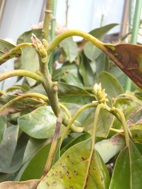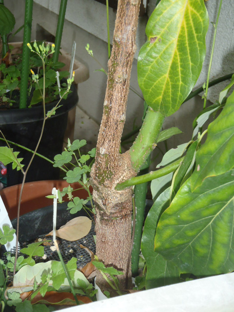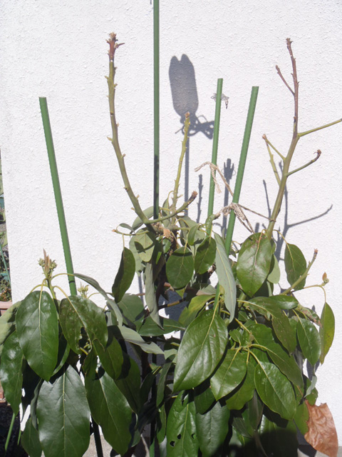 冬場の管理ミスでベーコンの枝の上部の葉っぱが枯れ落ちてます。