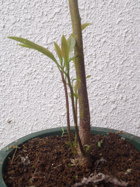 実生アボカドの摘芯後1ケ月後の状態。