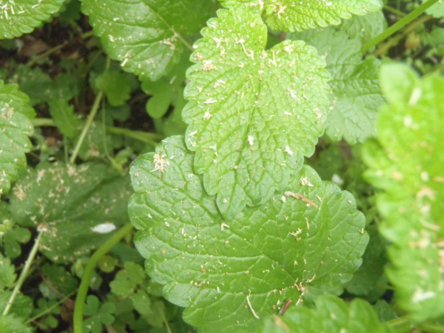 鉢の横のレモンバームの葉っぱにも |