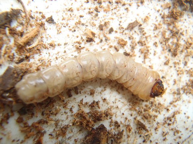 カミキリ虫の幼虫を駆逐しました。 (以下の画像の閲覧にはご注意を)