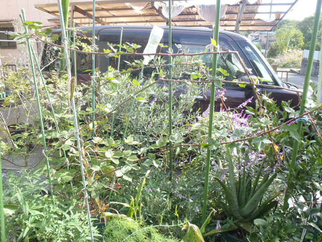 ベニカナチュラルスプレーのボトルを交換したので、捨てるボトルを洗った水をかけておいた。