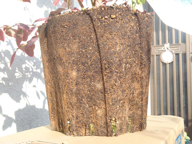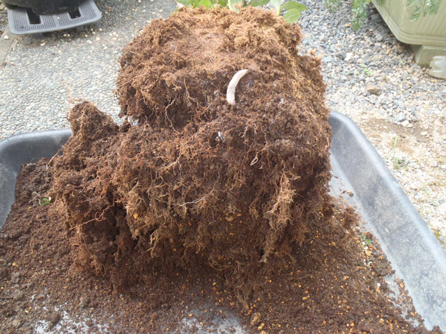 鉢増しをしようと思い、鉢から引っこ抜いたら根鉢が完全でなかったんでヤメにしました。