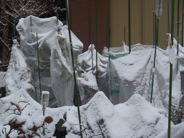 休日の晴天時には防寒用の囲いを持ち上げ、日光に当ててます。