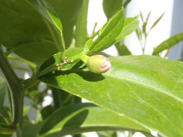 この木は昨年末に購入仕立てですので実を生らすと成長が遅くなってしまします。