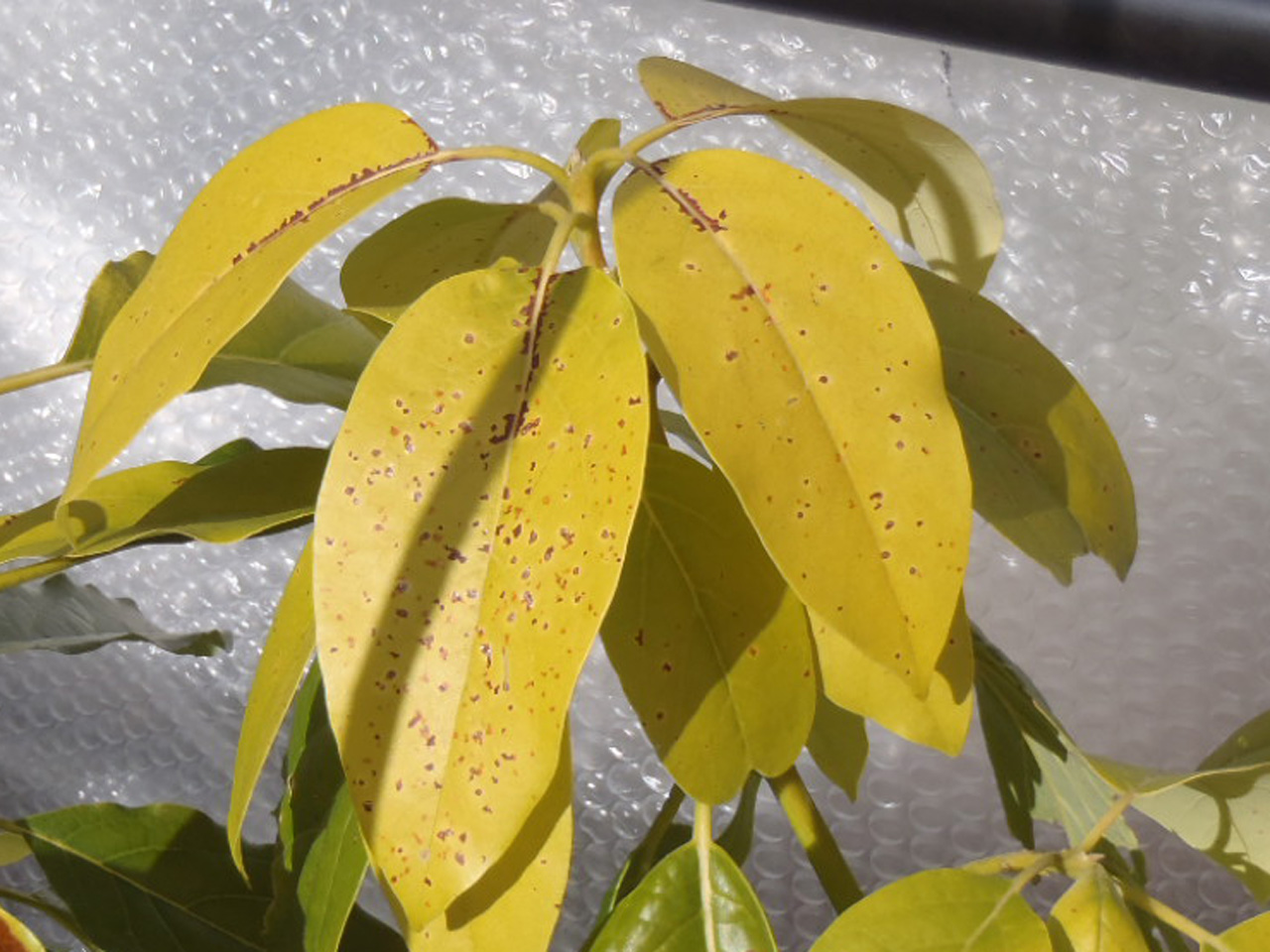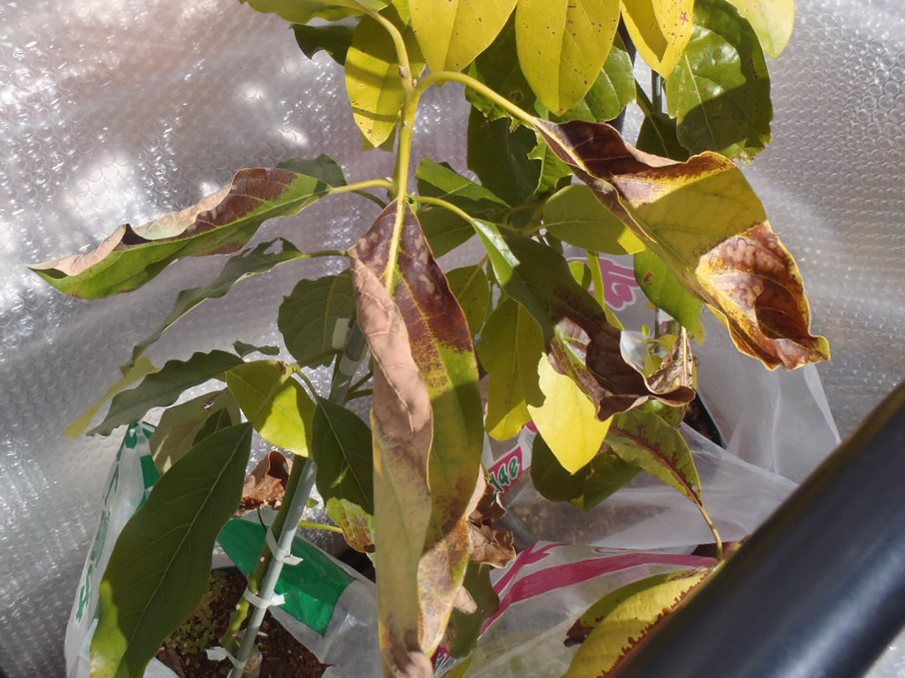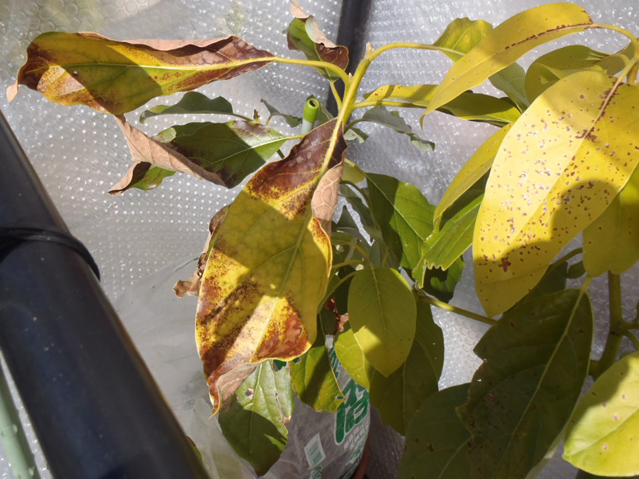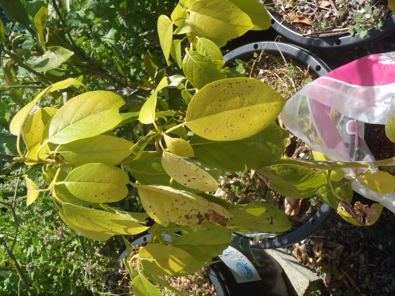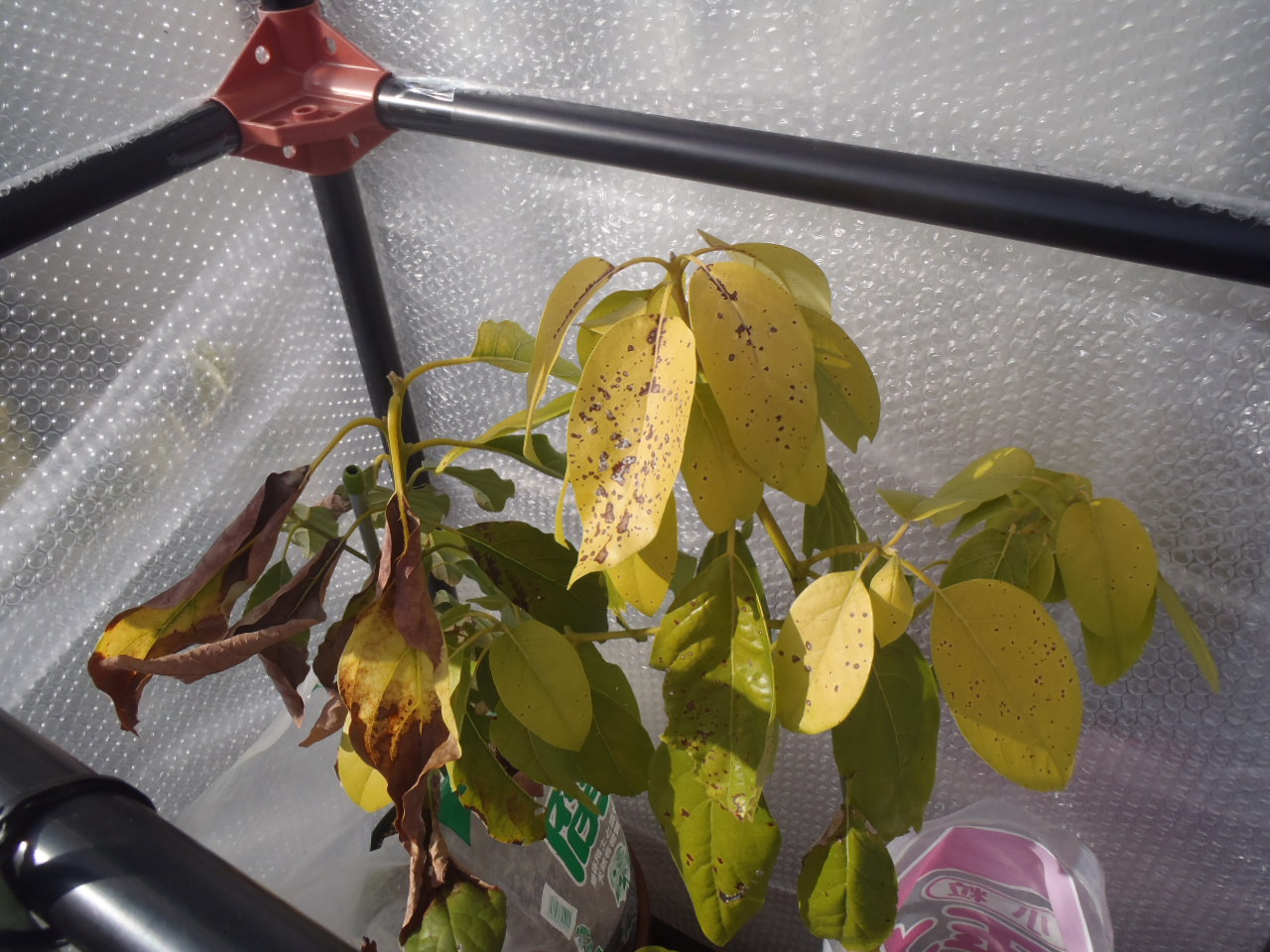 今年は気温が低く、最低気温が0度前後の日が続いているため、アボカドが痛んできました。